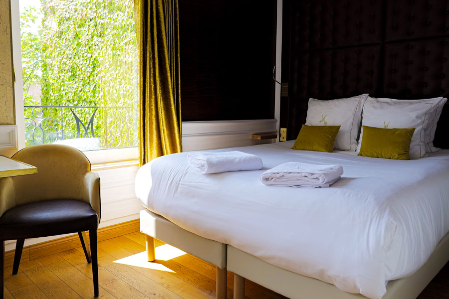 Découvrez nos deux suites, dont une avec terrasse, et nos huit chambres de caractère, toutes conçues pour vous offrir confort et sérénité.